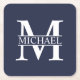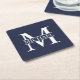 Dessous-de-verre Carré En Papier Monogramme et nom personnalisés bleu marine