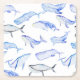 Dessous-de-verre Carré En Papier Motif de baleine bleue d'aquarelle
