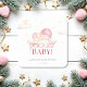 Le dessous de verre en papier carré "Père Noël Baby" a un design doux et festif, avec un bébé dans un chapeau de Père Noël rose avec des nuages et des étoiles doux. Il utilise un script rouge ludique et des tons pastel, créant une atmosphère de vacances confortable, parfait pour un baby shower d'hiver.