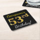 Dessous-de-verre Carré En Papier Noir, Faux Gold 53ème anniversaire + Nom personnal