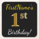 Dessous-de-verre Carré En Papier Noir, Faux Or 1er anniversaire + Nom personnalisé