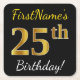 Dessous-de-verre Carré En Papier Noir, Faux Or 25e anniversaire + Nom personnalisé