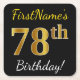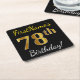 Dessous-de-verre Carré En Papier Noir, Faux Or 78e anniversaire + Nom personnalisé