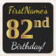 Dessous-de-verre Carré En Papier Noir, Faux Or 82e anniversaire + Nom personnalisé
