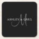 Dessous-de-verre Carré En Papier Nom de famille élégant Monogramme | Noir, Gris & B