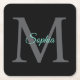Dessous-de-verre Carré En Papier Nom du script turquoise, Monogramme gris grand sur