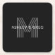 Dessous-de-verre Carré En Papier Nom rétro moderne éditable monogramme noir et gris