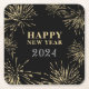 Ce dessous de verre en papier noir et or Happy New Year présente une illustration moderne, élégante et classe, avec des feux d'artifice de premier plan.