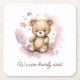 Dégustez vos invités à votre baby shower avec les dessous de verre les plus doux "on peut patienter" ! Dotés d'un charmant design d'ours en peluche rose pastel apaisant, ces dessous de verre en papier carré apportent une touche de style boho à toute célébration. Alors que les invités se rassemblent pour fêter la future maman, ces dessous de verre fantaisistes les feront "porter" leur excitation. La teinte rose apaisante et les nuages de rêve créent une atmosphère sereine et d'inspiration nature qui complète l'esthétique bohème, minimaliste ou classique du baby shower.