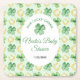 A charming St. Patrick’s Day baby shower coaster featuring a soft green background, golden horseshoes, and scattered four‑leaf clovers for a sweet “lucky charm” theme. The central white oval frames the event details beautifully, creating a warm, welcoming design perfect for celebrating a growing family. Ideal for March celebrations, Irish‑inspired themes, or any baby shower that embraces luck, joy, and new beginnings.