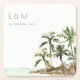 Dessous-de-verre Carré En Papier Palmiers tropicaux Mariage de sable de plage Monog