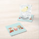 Dessous de verre en papier avec une jolie illustration représentant un lapin, un ours et un cerf, tous habillés en tenue festive. Adorable et capricieux.