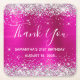 Créez votre propre parties scintillant en faux argent glam girly et en feuille rose vif et chaud merci dessous de verre en papier carré arrondi pour sa fête spéciale de 21e anniversaire. Fille faux brillant, parties scintillant argentée sur le haut et le bas, sur un faux rose rose style métal brossé à l'ombre feuille. Les couleurs principales sont le rose chaud, le fuchsia, le rose, l'argent, le gris et le blanc.