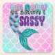 Fille et glam Splashy Sassy parties scintillant violet et vert dessous de verre en papier de sirène avec un arrière - plan d'écailles de sirène rose et turquoise.