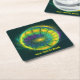 Image fractale sphérique, segmentée (ou articulée) en vert, bleu et jaune sur un arrière - plan vert foncé. Customisez en ajoutant votre propre texte.