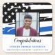 Félicitation ! Ajoutez la touche finale à votre retraite de police ou à votre fête de graduation avec ces minces dessous de verre de graduation de police de ligne bleue et fournitures de parti. Etats-Unis Drapeau américain dans Police Drapeau couleurs, design moderne. Cette collection de félicitations à l'officier de police sera un favori. Personnalisez avec des policiers photo, nom et date, et les félicitations peuvent être changés pour une retraite heureuse pour le parti de retraite de la police, ou la fête de remise des diplômes de l'académie de police. Consultez notre mince collection de lignes bleues pour les invitations à la remise des diplômes de police, les cadeaux de la police, les faveurs de la fête et les fournitures. DROIT D'AUTEUR © 2020 Judy Burrows, Black Dog Art - Tous droits réservés. Police Graduation Party Photo mince Ligne bleue Carré Dessous de verre papier