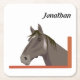Portrait vectoriel d'un cheval gris surplombant une clôture en bois, avec le mot "Jonathan". Vous pouvez personnaliser l'aimant en remplaçant le nom par vos propres mots. C'est le cadeau idéal pour quiconque aime les chevaux!
