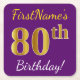 Les caractéristiques de conception ce de papier simples de dessous de verre un message aiment "le quatre-vingtième anniversaire de FirstName ! ", avec "le quatre-vingtième" ayant un faux/imitation or-comme l'aspect de couleur, sur un arrière - plan coloré par pourpre. Le nom peut être personnalisé. Des dessous de verre de papier personnalisés comme ces derniers pourraient peut-être être utilisés à une fête d'anniversaire pour quelqu'un qui célèbre leur anniversaire quatre-vingtième. [~Z0000197]