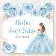 Ce dessous de verre sweet sixteen dispose d'une belle princesse en robe de bal bleu aux arrangements floraux. C'est parfait pour une fête d'anniversaire en sweet sixteen.