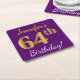 Dessous-de-verre Carré En Papier Purple, Faux Gold 64e anniversaire + Nom personnal