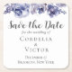 Un cadre floral élégant de roses violettes aquarellées encadre ce sous-verre chic de mariage hivernal Enregistrez la Date avec une belle bordure botanique de fleurs et de feuilles violettes.