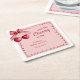 Ajoutez une touche de douceur à votre fête de mariage avec nos dessous de verre carrés en papier Rouge & Rose Cherry On Top ! Dotés d'une adorable paire de cerises dessinées à la main, nouées d'un ruban de style satin et encadrées d'une bordure ondulée ludique, ces dessous de verre d'inspiration coquette sont le parfait mélange de charme et d'élégance. Le fond rose blush et les accents rouges apportent une atmosphère romantique mais fantaisiste à votre célébration. Idéaux pour l'heure du cocktail, les tables de desserts ou les brunchs de mariage, ces dessous de verre jetables protègent les surfaces tout en sublimant votre décoration de fête. Associez-les à d'autres articles sur le thème de la cerise pour une esthétique de fête de mariage cohérente et adorable !