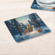 Dessous-de-verre Carré En Papier Scene d'arbre de Noël Cute Deer Fawn Snowman