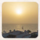 Vue sur le complexe de bungalows à la mer avec un voilier au coucher du soleil, à Costa Adeje, Espagne, Tenerife