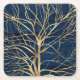 Dessous-de-verre Carré En Papier Silhouette Arbre d'Or moderne Design bleu minimal