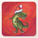 Dessous-de-verre Carré En Papier TRex Dino à Santa Hat sur Red