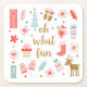 Un dessous de verre de papier de Noël ludique avec le message, Oh ce qui est amusant. Il est décoré de jolies illustrations de cadeaux, mitaines, un bas de Noël, un sapin de Noël et un renne. Un dessous de verre amusant pour la saison des fêtes. Conçu pour vous par Blackberry Boulevard.