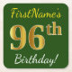 Dessous-de-verre Carré En Papier Vert, Faux Gold 96e anniversaire + Nom personnalis