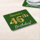 Dessous-de-verre Carré En Papier Vert, Faux Or 46e Anniversaire + Nom Personnalisé