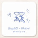 Dessous-de-verre Carré En Papier Whimsical Hand Drawn Blue Wine Glasses Wedding