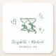 Dessous-de-verre Carré En Papier Whimsical Hand Drawn Green Wine Glasses Wedding