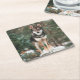 Dessous de verre de papier Carré Wolfdog. Belle photo du Wolfdog Nox, debout sur un rocher, Bois de Vincennes, Paris, France. Photo Tahoe Beetschen.
