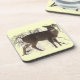 Cet ensemble de dessous de verre de liège comporte un cerf commun blanc-coupé la queue par brun sensible se déplaçant par les bois neigeux d'hiver. Elle a arrêté et a tourné sa tête parce qu'elle a entendu un bruit. Ses grandes oreilles sont vigilantes. Le visage a les taches blanches autour des yeux et du nez.