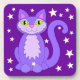 Un chaton mauve et souriant avec beaucoup d'étoiles, mignon chaton caricaturiste, arrière - plan violet, oeuvre d'art originale. Vous pouvez modifier la couleur de l'arrière - plan si vous le souhaitez - personnaliser -> modifier -> arrière - plan.