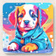 Un design artistique coloré et mignon d'un chiot portant un manteau bleu (ce design Fabriqué avec de l'IA). Commandez dès aujourd'hui et offrez-vous la joie du shopping !