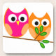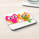 Dessous-de-verre Chouettes roses et orange mignonnes dans l'arbre