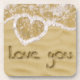 Dessous-de-verre Coeur "Love you" écrit dans Sable