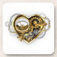 Coeur steampunk mécanique, volumétrique, avec manomètre, acier et or sur arrière - plan blanc. Style Steampunk.