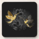 Colibris de bijoux en noir et or sur arrière - plan gris décoré de plantes. Bijoux. Oiseau doré. Oiseau d'or.