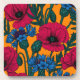 Dessous-de-verre Coquelicots rouges et fleurs de maïs bleues sur or