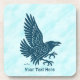 Une image simple et bleue d'un corbeau vivant (Corvus corax) de style norse-celtique, superposée à une image arrière - plan enneigée. Customisez en ajoutant votre propre texte.
