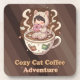 Dessous-de-verre Cozy Cat Coffee Adventure Art