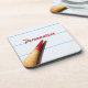 Un dessous de verre de style manuscrit avec un crayon de correction de l'enseignant de couleur rouge vif posé sur une feuille blanche de papier d'école doublé. Personnalisez ce design scolastique en signant votre nom. Parfait pour les écrivains, les enseignants ou les élèves du collège ou du lycée.