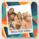 Créez vos propres dessous de verre photo personnalisés. Ajoutez simplement l'une de vos images préférées et du texte personnalisé dans la typographie de machine à écrire vintage sur un arrière - plan de bandes rétro couleur.