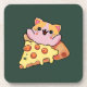 Dessous-de-verre Custom Kawaii Cat Hugging Pepperoni Pizza Cartoon