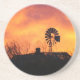 Des dessous de verre de qualité avec une photo d'un beau coucher du soleil sur un ranch occidental du Texas, avec le vieux moulin à vent et ranch dans le premier plan.